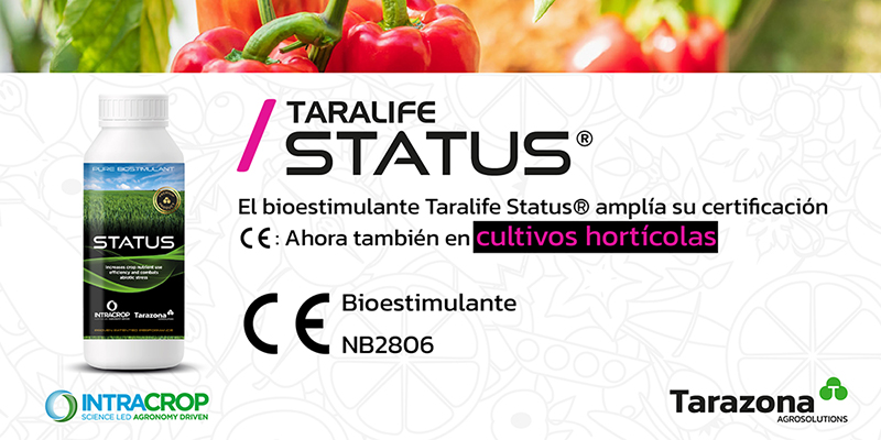 Tras obtener la certificación CE como bioestimulante bajo el Reglamento (UE) 2019/1009, Taralife Status®, de IntraCrop y distribuido por Tarazona Agrosolutions en España y Portugal, da un paso más en su consolidación como solución agronómica de referencia. La certificación se amplía ahora para incluir cultivos hortícolas, ornamentales, plantas medicinales y aromáticas, sumándose a los registros ya existentes en cultivos extensivos y leñosos perennes.